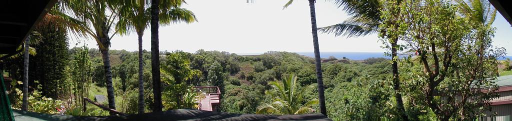 Here's a partial panorama taken from the hammock outside my apartment at the school: