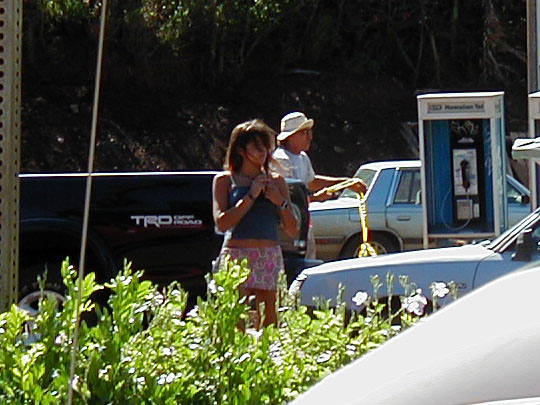 I've kept this quiet for a year, but I happened to have my camera handy last time I was in Paia so the truth must come out. This is what a typical Haiku hitchhiker looks like: