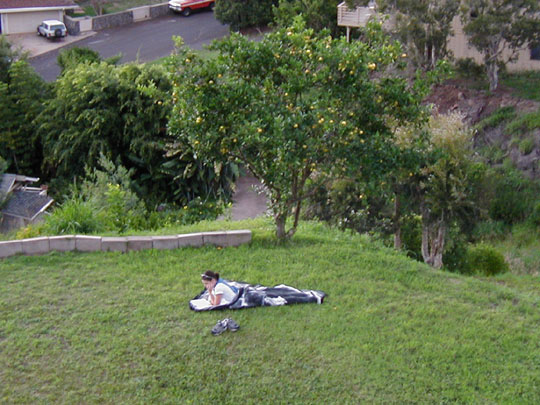 Around dusk, Garrett* pointed out to me Samantha reading beneath the lemon tree. The scene immediately reminded me of the movie Lolita, and judging by my success in eliciting a moan from Garrett* upon mentioning that I suspect the thought had already occurred to him too.
