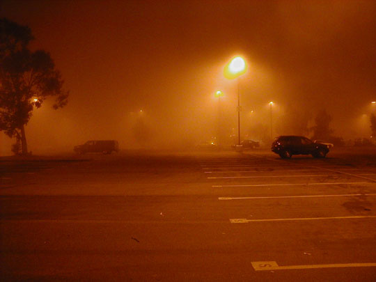 And here's the foggy parking lot at 2am where I was testing it out (exciting eh?):