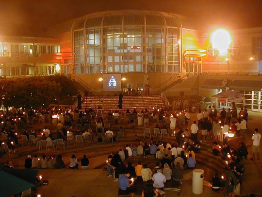 And here's a bunch of UCSD students holding a candlelight vigil for the souls of the WTC people, or for world peace, or for something along those lines. I walked out the theater door from a $2 death and destruction showing of The Mummy Returns, smack into this scene and was offerred a candle whilst weepy students gave sappy speaches and mentioned god a lot:
