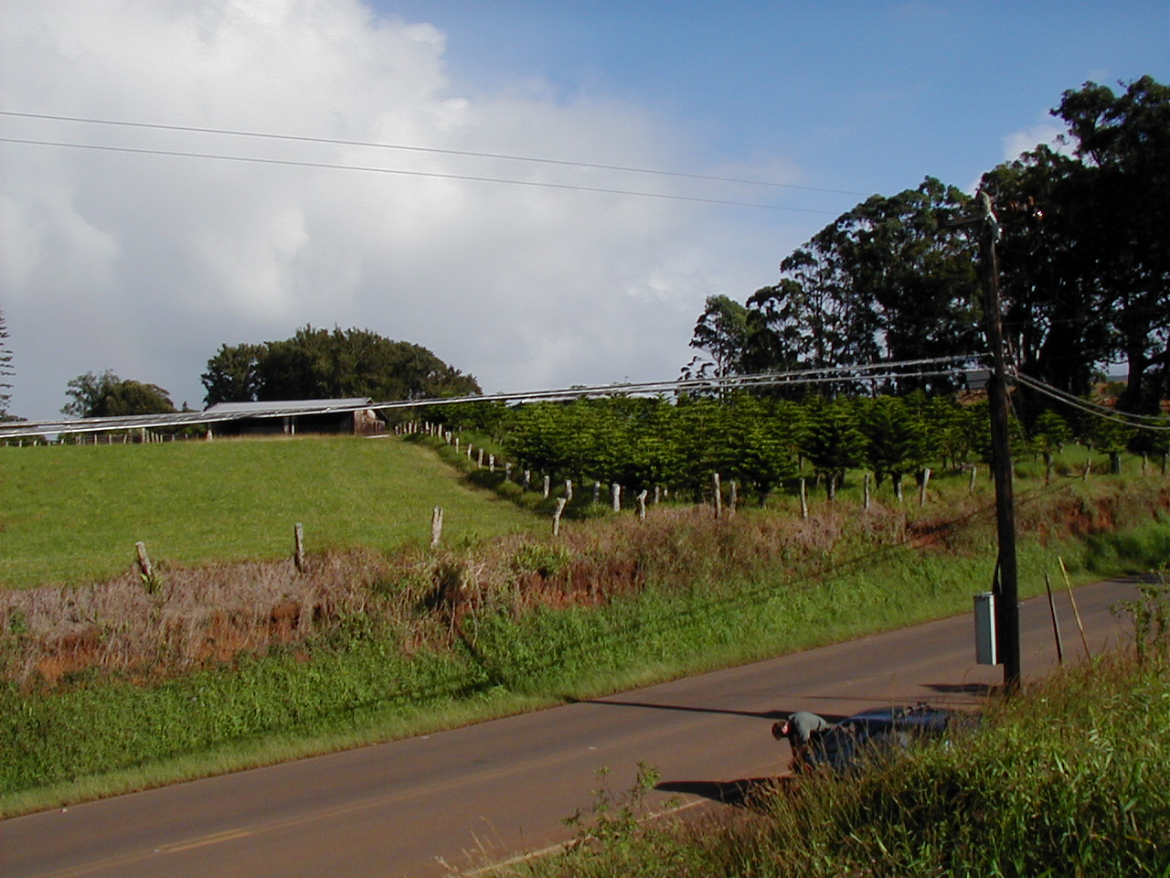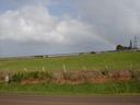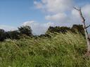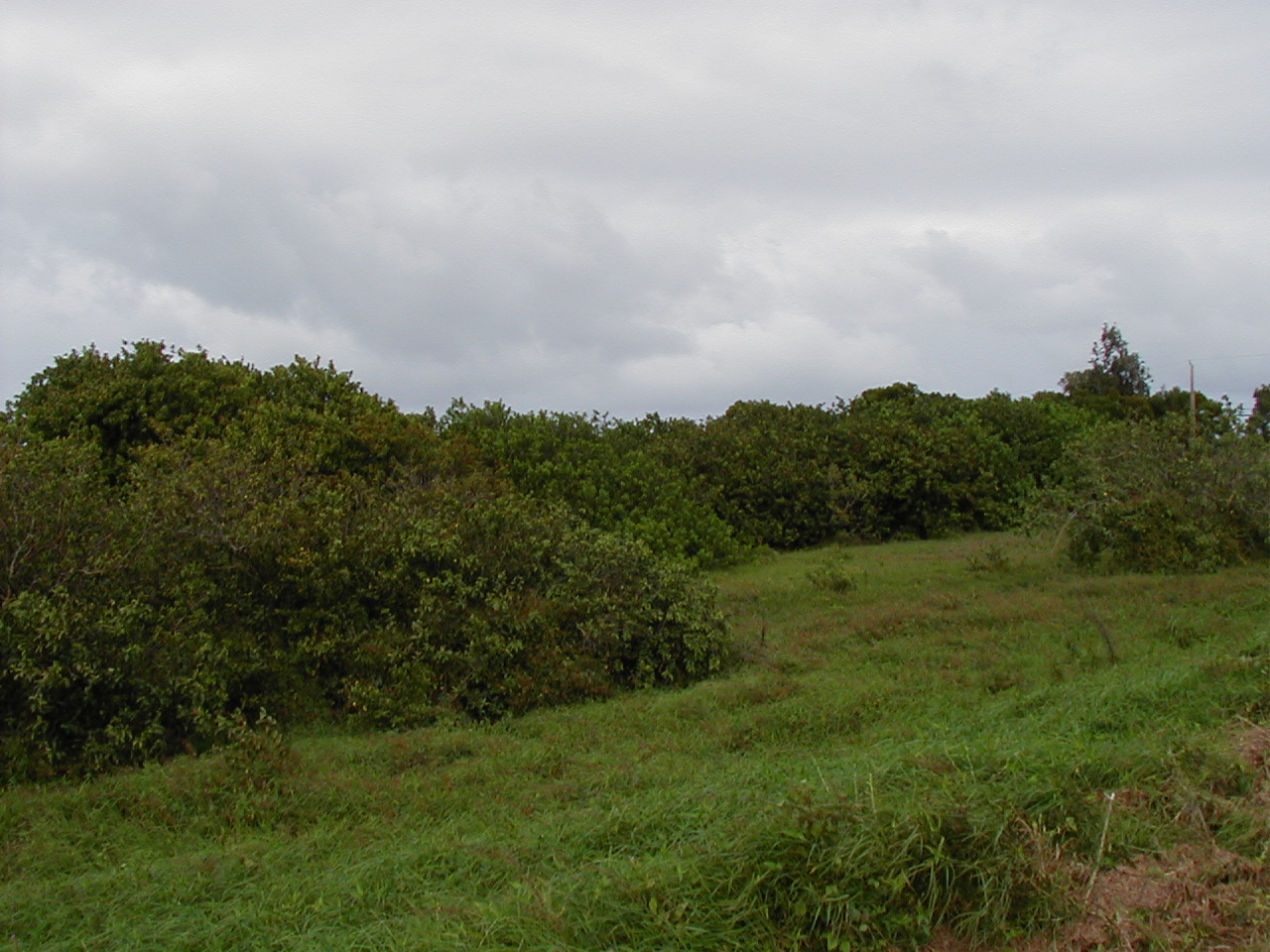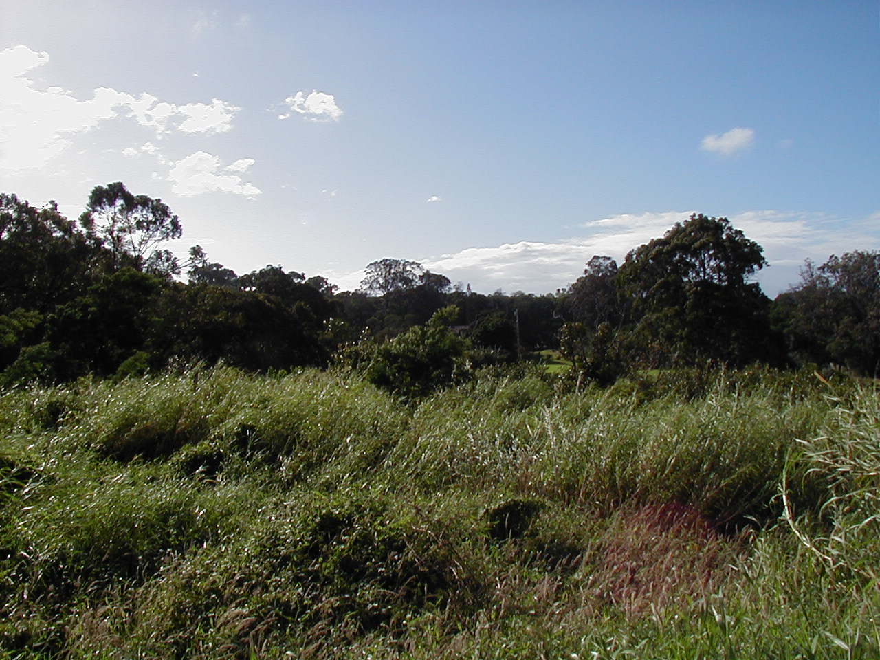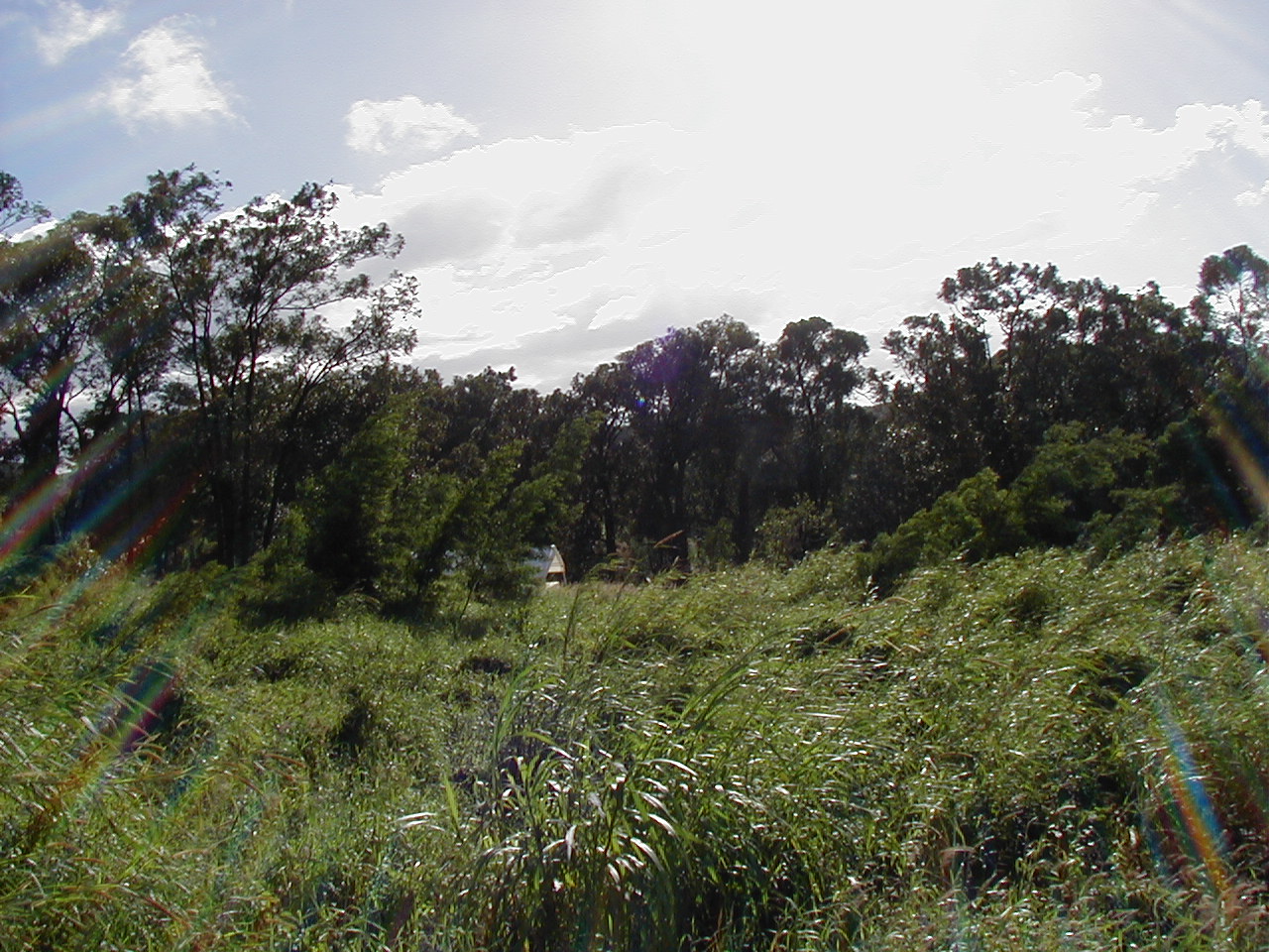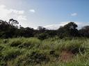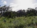 Other end of the property, viewed from the road, looking down on the stream (or the tops of the trees growing over it, anyway):