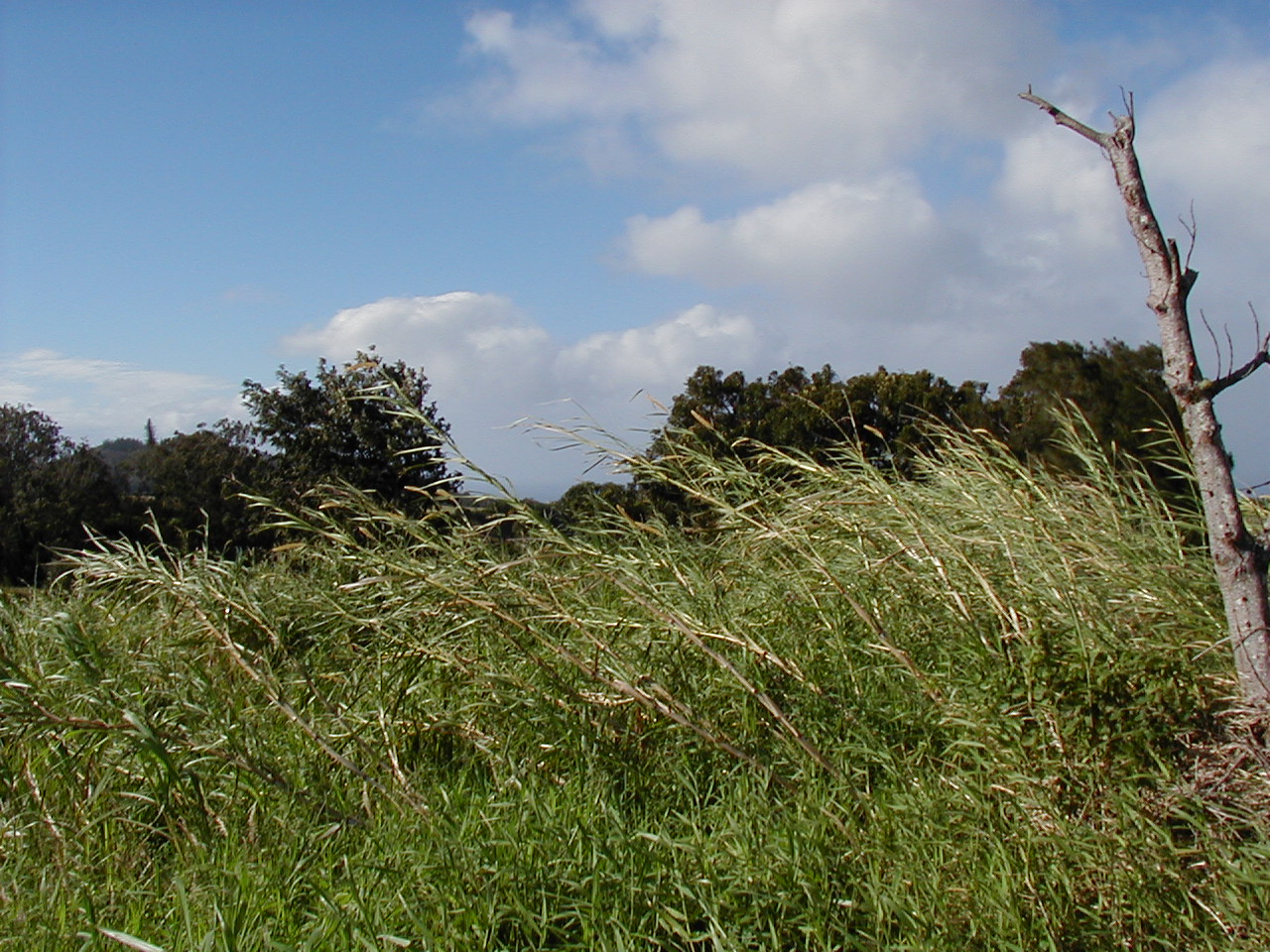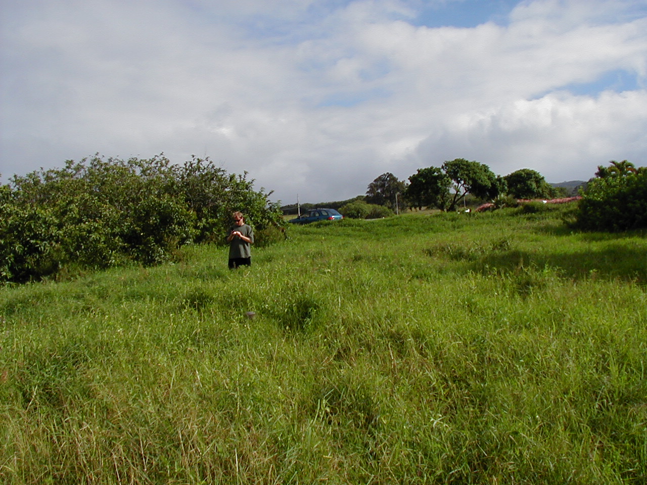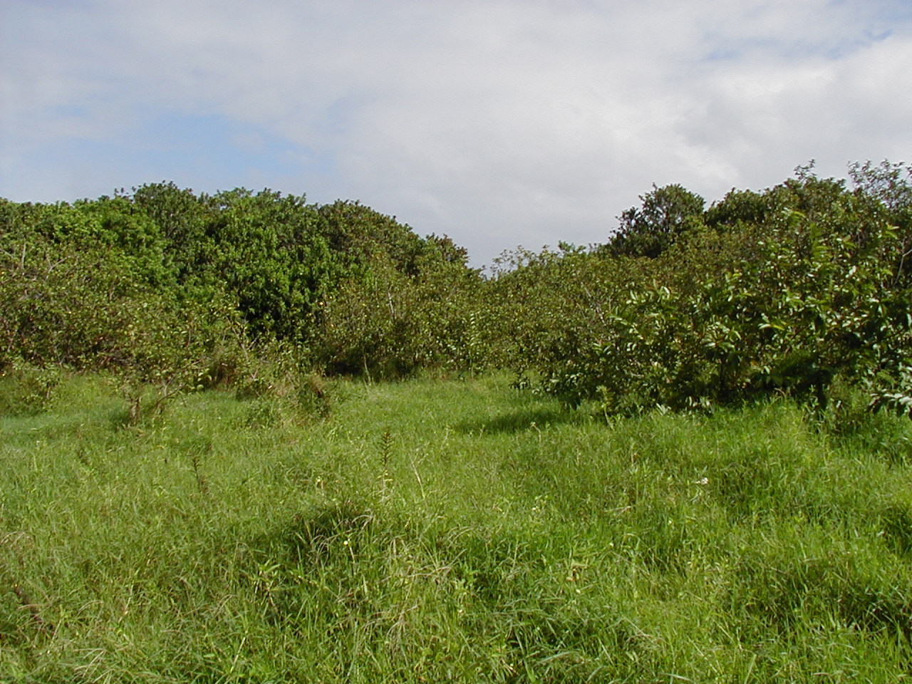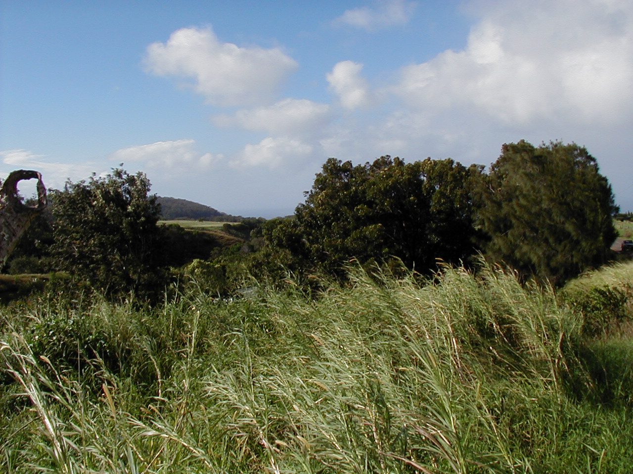 Other end of the property, viewed from the road, looking down on the stream (or the tops of the trees growing over it, anyway):