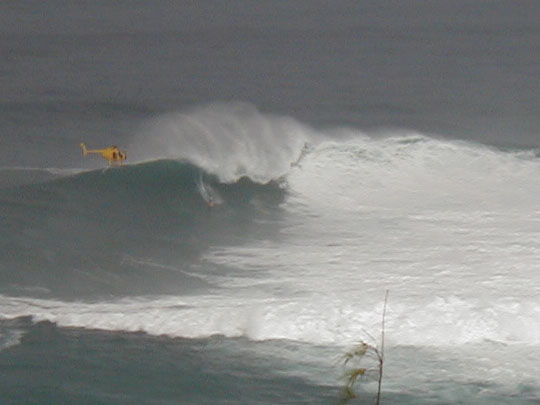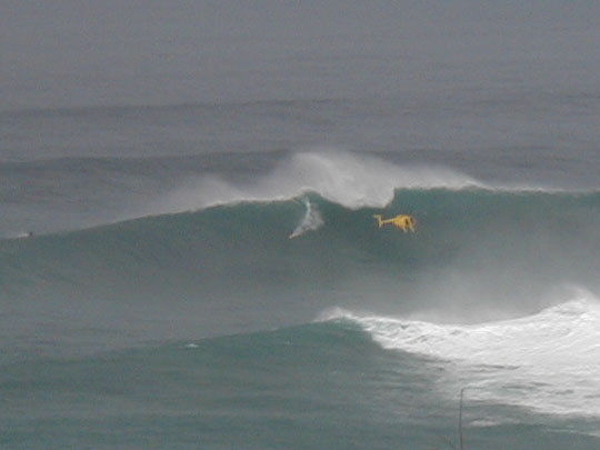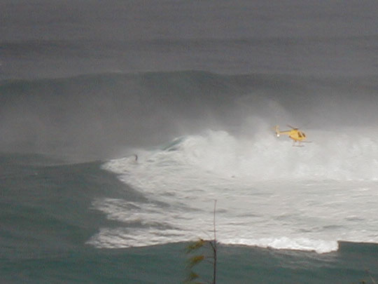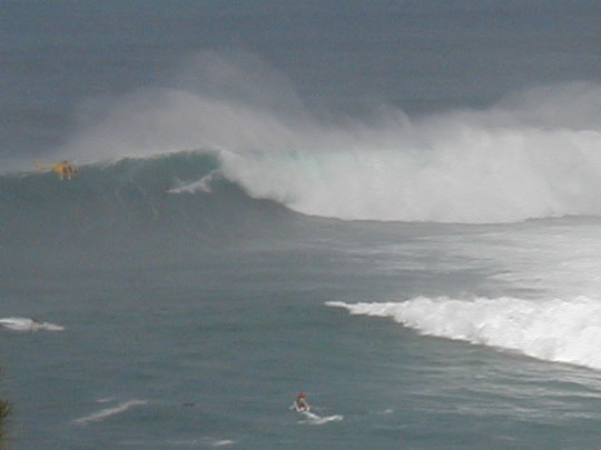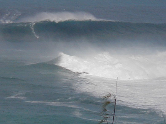 [<< | Prev | Index | Next | >>] Monday, January 07, 2002 Strange Weather; Jaws The winds shifted mid-day and created this (yesterday): Tow-in surfing competition at Jaws today... [<< | Prev | Index | Next | >>]