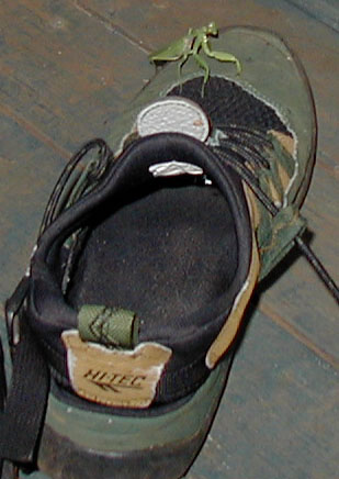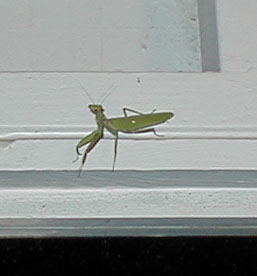 When I walked out onto our entryway to film this praying mantis, instead of running away it starting tracking me with its head like it was going to jump at me. Then it did! Three or four times! I kept jumping out of the way and trying to take pictures of it before it could turn around and fly at me again. Finally I ran inside and closed and locked the door behind me. I swear I heard scratching on my window that night.