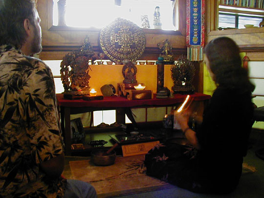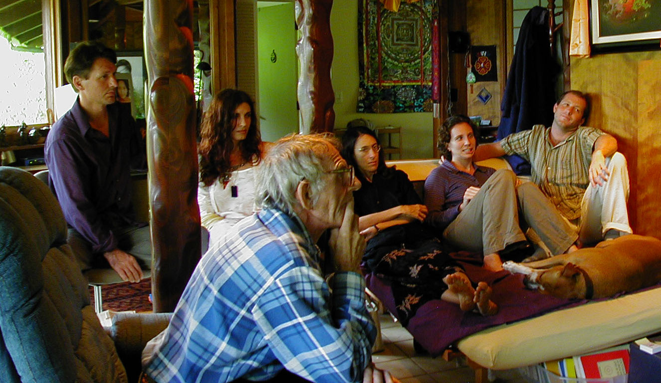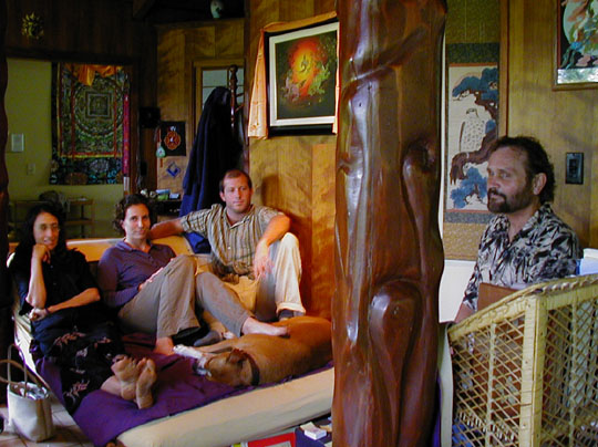 Romeo and his latest girl, and the "brilliant scientist" they brought to debate science and metaphysics with us, listening to Erik's story of his death (he got better!). Erik had them on the edge of their seats with his spiritually confirming experience (note Agatha's expression; heh heh) until he sorely disappointed them at the end by chalking it all up to a fabrication of his own near-death brain: