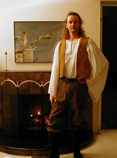 What I wouldn't give for a holocaust cloak...Inigo: There we cannot help you. Fezzik: [pulls a black cloak from under his shirt] Would this do? Inigo: Where did you get that? Fezzik: At Miracle Max's. It fit so nice, he said I could keep it. Except it was me talking on the phone with Kalistrya*, who just happened to have made a man's middle-earthy shirt recently for no particular reason, so she mailed it to me. Here it is with my American Indian moccasins, hand-me-down western suede vest, and Costco pants. Yeah, straight from Middle Earth: