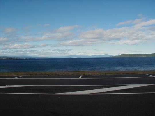 Today was less gloomy than yesterday, so I snapped a pic of lake Taupo on the way out of town. Taupo is New Zealand's Tahoe:
