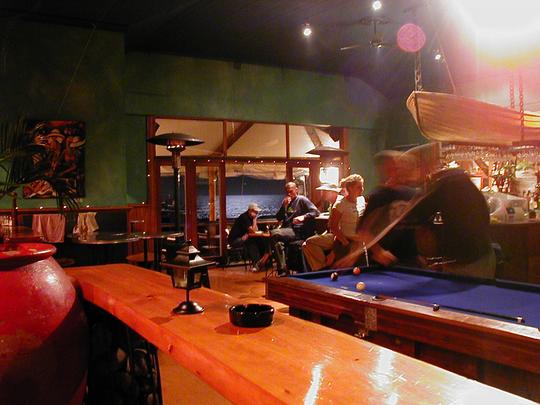 They had live music at the restaurant that night, a couple of guys doing Simon and Garfunkel's The Boxer at this particular moment. Note the moonlit water in the background: