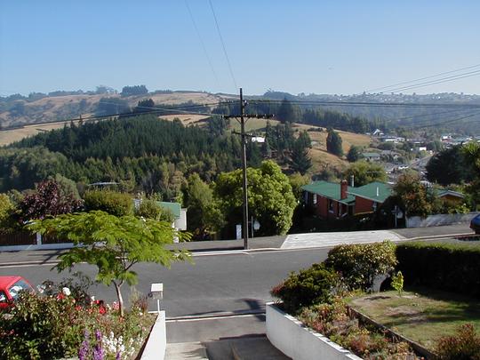 Suburban Dunedin ("duh-NEE-din"), viewed from our homestay: