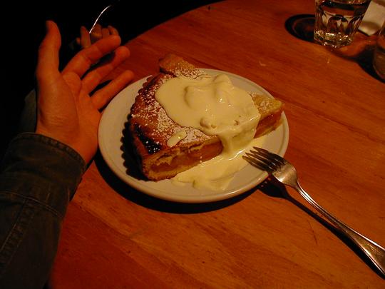Come evening, we wandered through town reading all the menus 'till we found one that sounded sufficiently delectable. I ordered the Ahi, and it was goooood. Each of our dinners ended up being easily enough for two, so we took half home for lunch the next day. But we had to try desert since the food was so good. Luckily we only ordered one slice of pie: