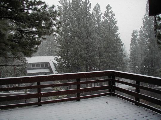It's been sunny and dry since I arrived in Tahoe so I was a bit surprised to look out my window and see snow yesterday: