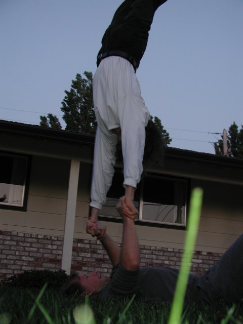 That last trick proved truly stupid when on the way down in a twist something in my left hand made a loud SNAP! accompanied by, shall we say, pain. I quietly excused myself from the human circus and wandered off to poke and prod at my hand to see if I could figure out what I did to it--with the unfortunate conclusion that I'd broken the metacarpal bone of my left ring finger.