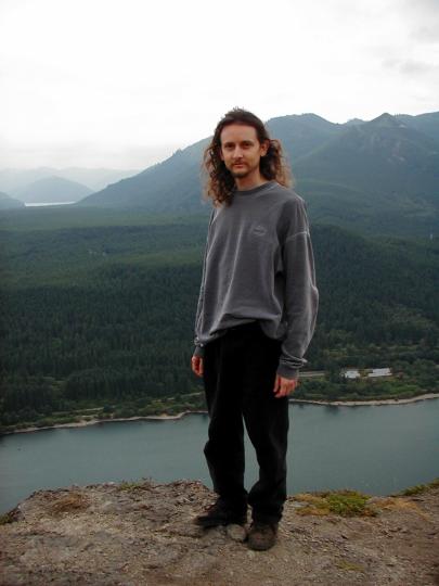 Sitting here now writing myself this email since my computer and journal scripts are buried deep in my car. Martin's plump and fluffy allergen generator snores nearby, arms stretched toward the rising moon like a road-kill balloon. Carnitas in the fridge, leftovers from dinner, a twenty minute walk down windy roads in the dark to the last restaurant open on a Sunday night. I was surprised on the way back in this fairly urban setting by a rather large deer and her fawn bolting out of someone's front yard as I passed. Martin is gone; he left this morning. I arrived this evening, following the ten hour drive from Portland that became thirteen after stop-and-go traffic beginning somewhere out in the desert and lasting for four hours and a hundred miles. I oddly woke up unprovoked at 5am this morning after going to bed at 1am, and decided in the name of novelty to stay up, experience morning, and head out early. But I think I would have arrived almost as soon if I'd just slept in.Don came in second in his 7.5 mile race, swimming up-wind in cold, choppy Maine waters for almost six hours. What a nut. :) For further proof, he kept this which I made god knows how many years ago, probably when visiting them in Brookings: