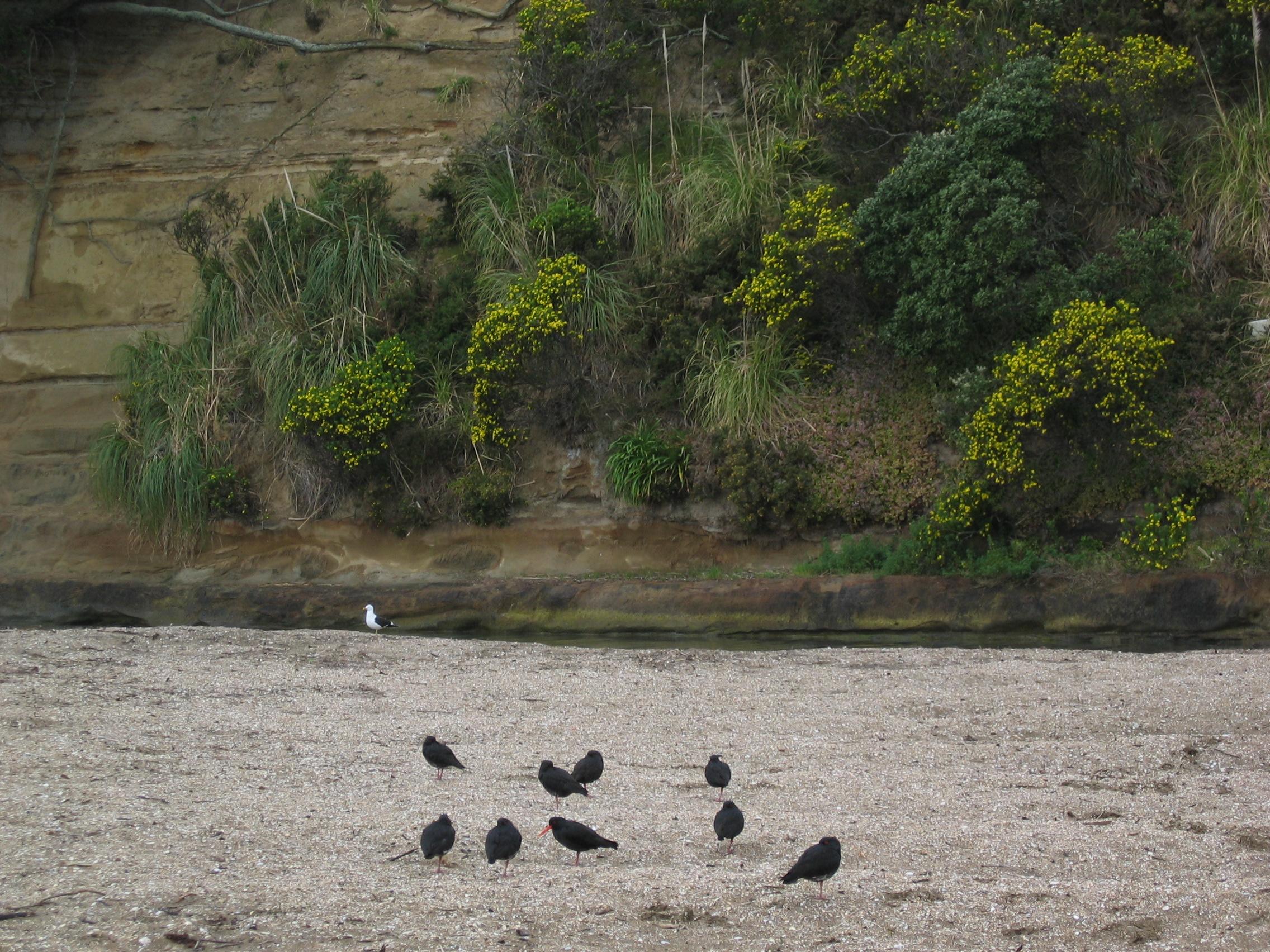 The same beach at low tide on a sunny day, from a little further back, looks like this: