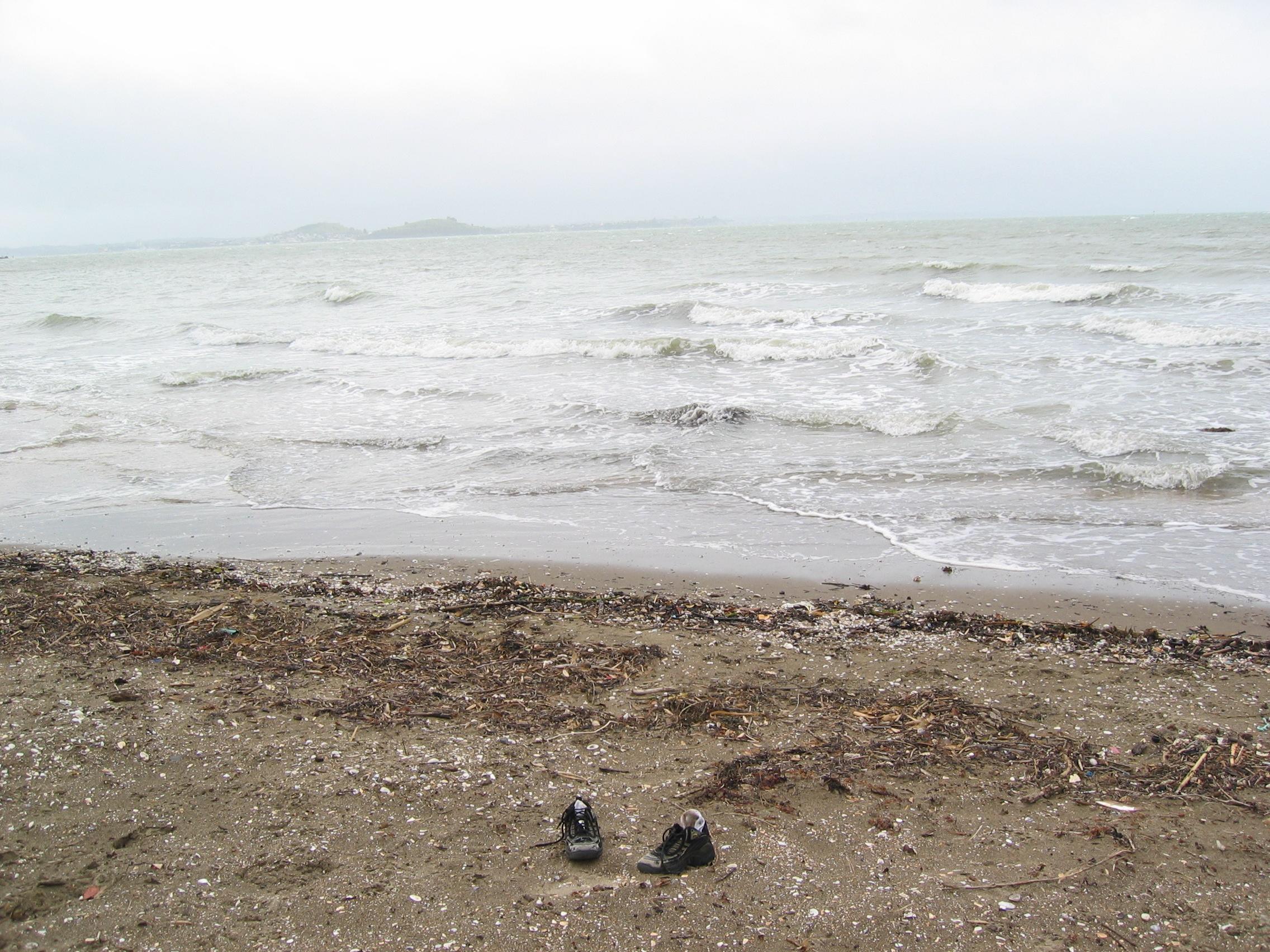 One cold and rainy day, not another soul in sight, I came upon these soggy shoes just out of reach of reach of the recently high tide. They looked to have been there for quite some time... One has to wonder.