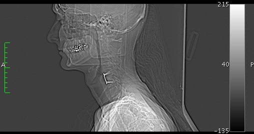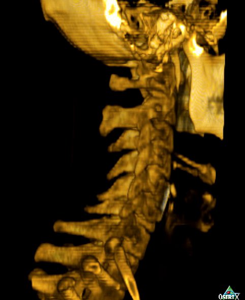 When I look left, my left arm goes numb. So they sent me in for more scans. I learned first-hand that MRIs induce electrical currents in titanium, which can be quite interesting when it's pointing at your spinal cord. Some minor findings, but nothing major warranting more surgery. Which is good. As long as I don't need to look left.Here's a movie (30MB) we made from the CT data with which to entertain you. Please enjoy it with much glee so when I die of thyroid or brain cancer I'll know deep down it was all worthwhile. Click on the image to view or download. (It's just a 360 rotation, alas. Sorry, no singing skulls.)