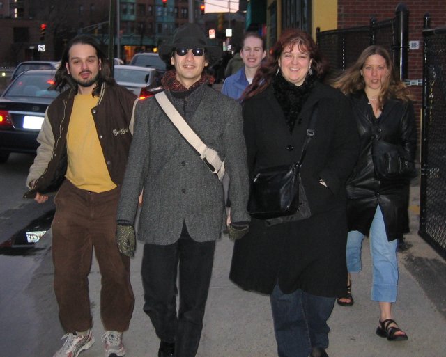 [<< | Prev | Index | Next | >>] Sunday, April 09, 2006 Night Out Walking in Boston with Gustavo*, Fare* and gf, Fuzzbean*, and Danielle*. (Walking backwards, that is--I'm takin' the picture.) [<< | Prev | Index | Next | >>]