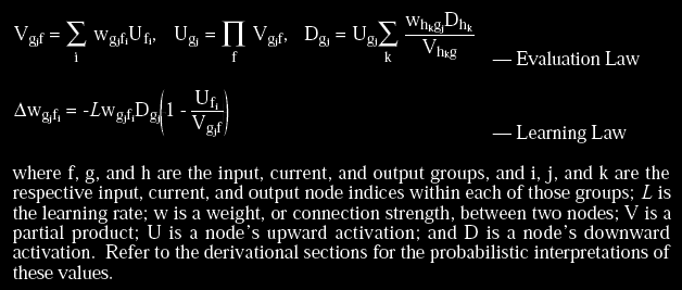 The next section describes a particular modeling architecture, Furf-I. The following sections derive the corresponding evaluation and learning laws. It is important to remember that these derivations are based on the method of pattern generation--so a firm understanding of the generation algorithm is an absolute prerequisite to understanding the evaluation and learning laws which follow.