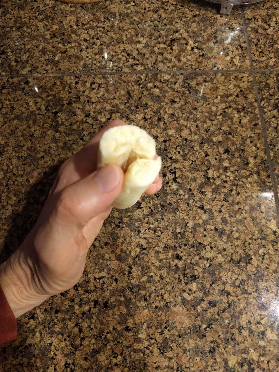 She can also eat a whole banana in one go, which again would be like me eating five, but I've learned not to question. We did discover, however, that bananas naturally split into lengthwise thirds. I feel somehow non-observant to have made it this far without knowing this.