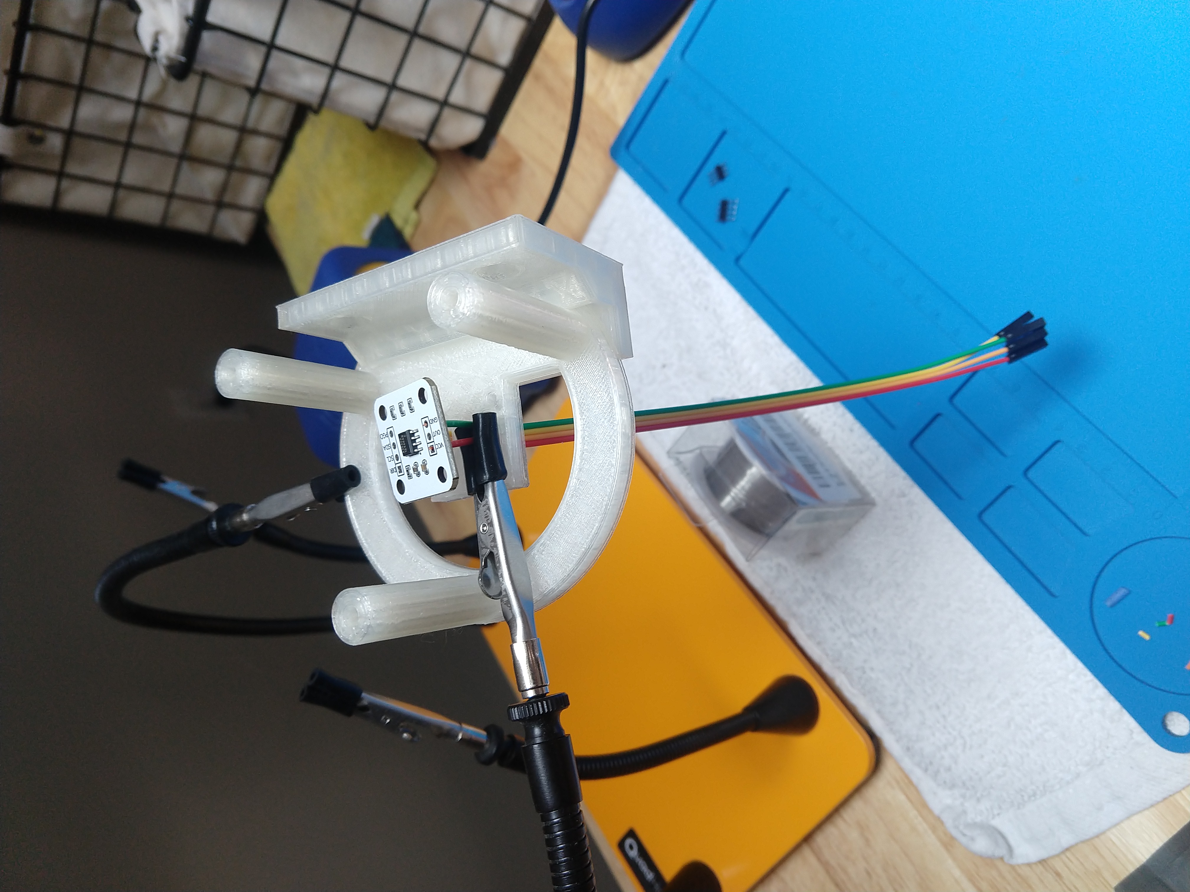 The mount that holds the motor and encoder. Chose to solder the wires on the encoder so I didn't have to worry about push-connectors vibrating loose: