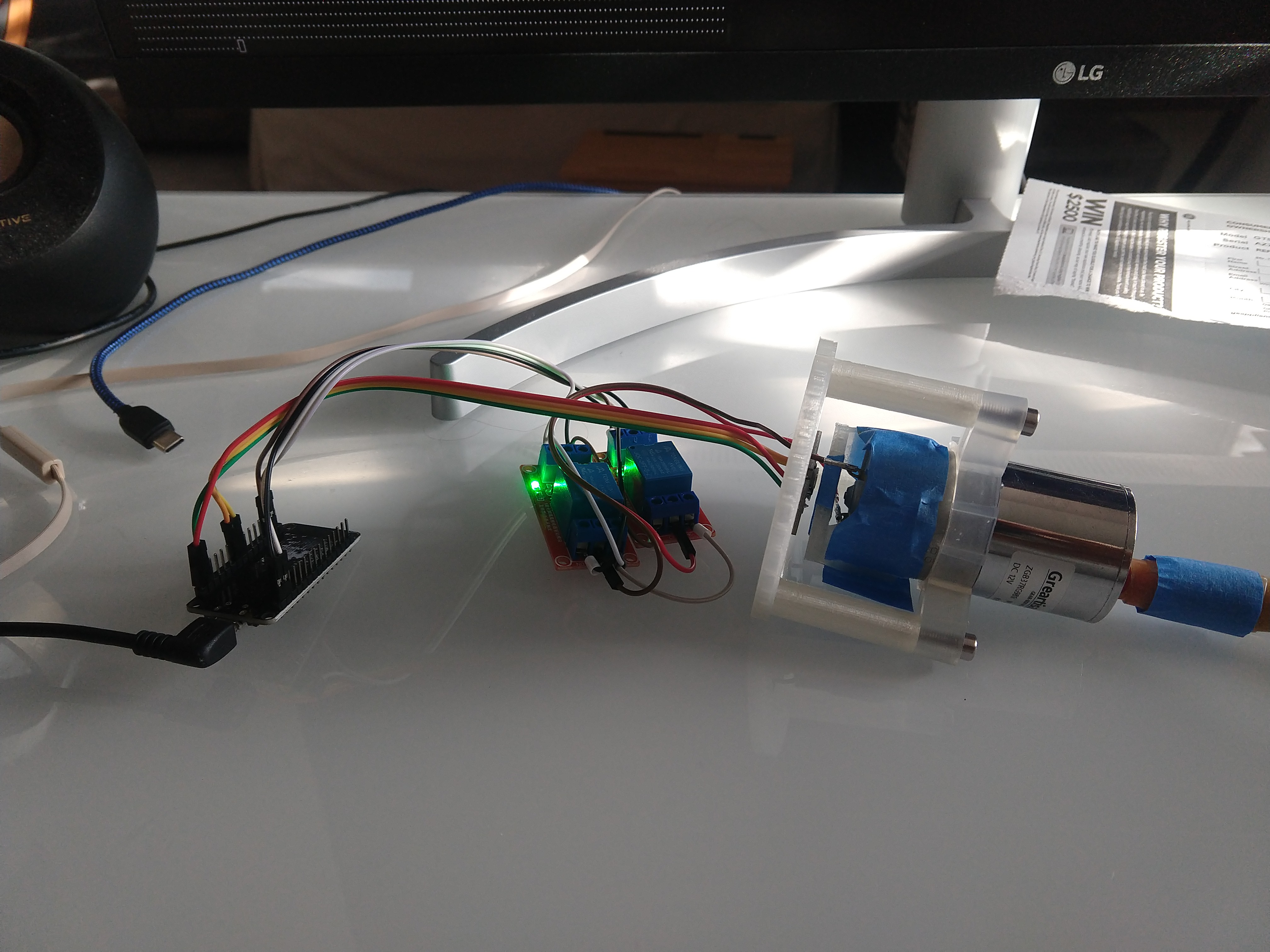 One key component is the silicone(?) motor mount, which I had previously salvaged from a dead Phillips water flosser and happened to be close enough to the right size for the geared motor I bought. That's the one hard-to-find component, and not included in the cost breakdown. The rest I very-quickly threw together in freecad and 3d printed for negligible cost. Only the magnet cuff required two takes (magnet was too loose) -- the rest I lucked out and got right on the first go. So the whole thing came together in a day and a half including software (helped that it only took minutes to integrate into my home automation system).