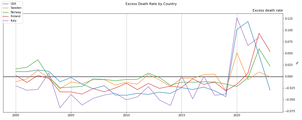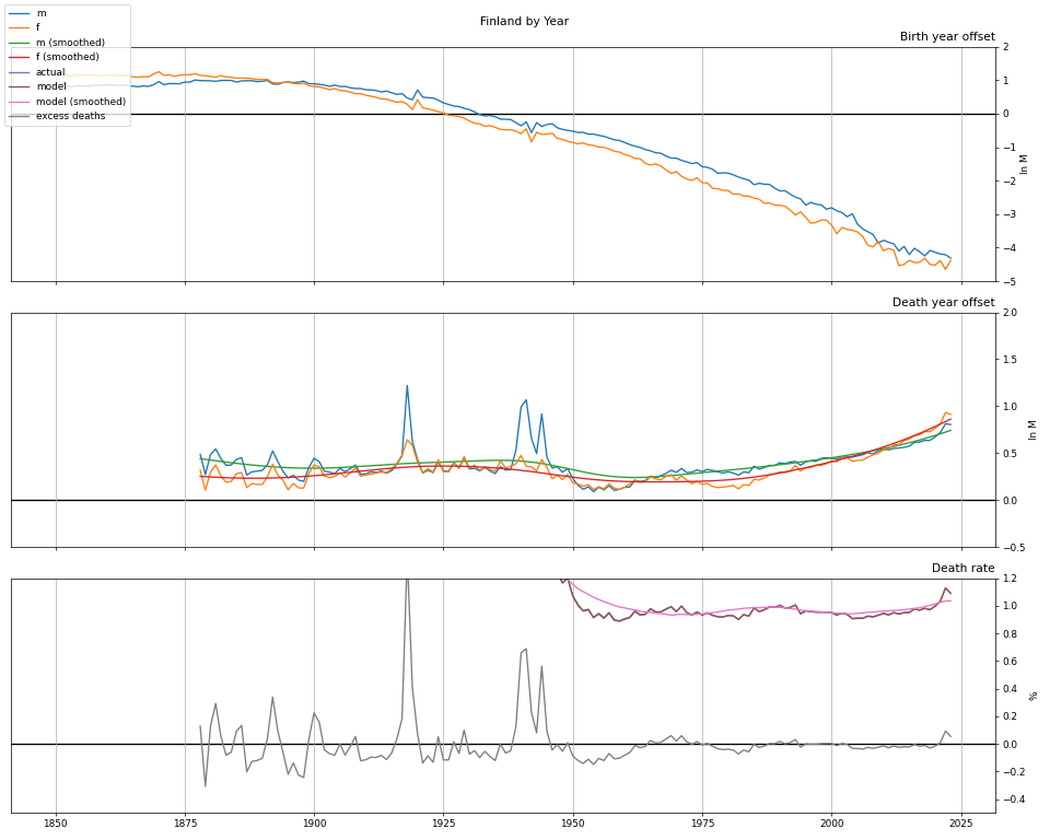 A "quick" model of excess mortality by country which accounts for cohort history. (Unfortunately this is calendar year rather than summer to summer since it's hard to get long-term data for the latter.)