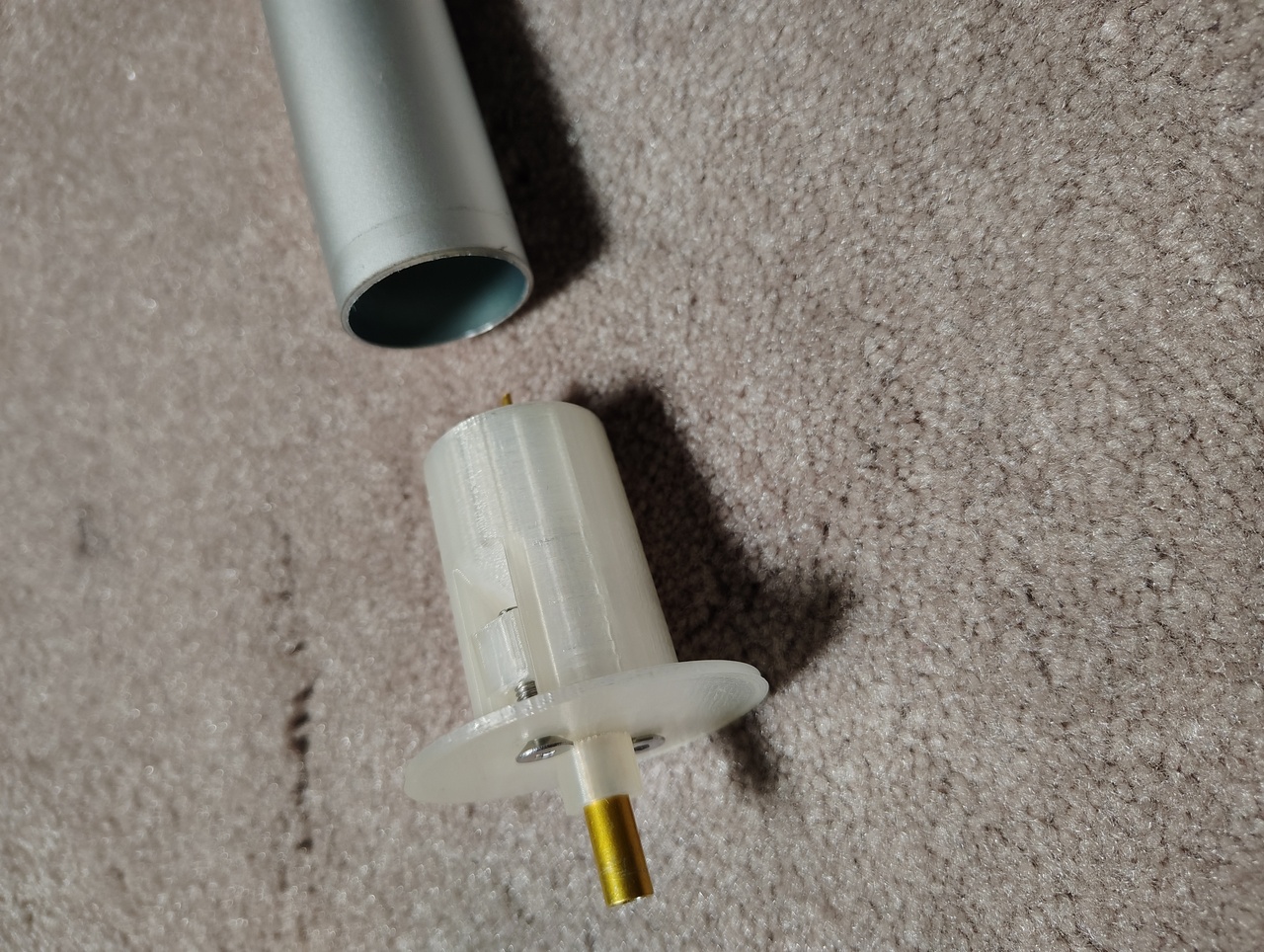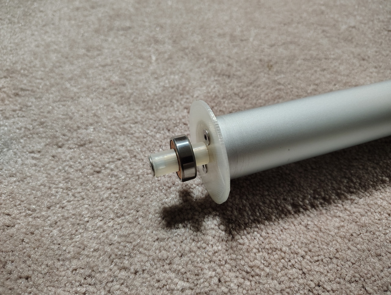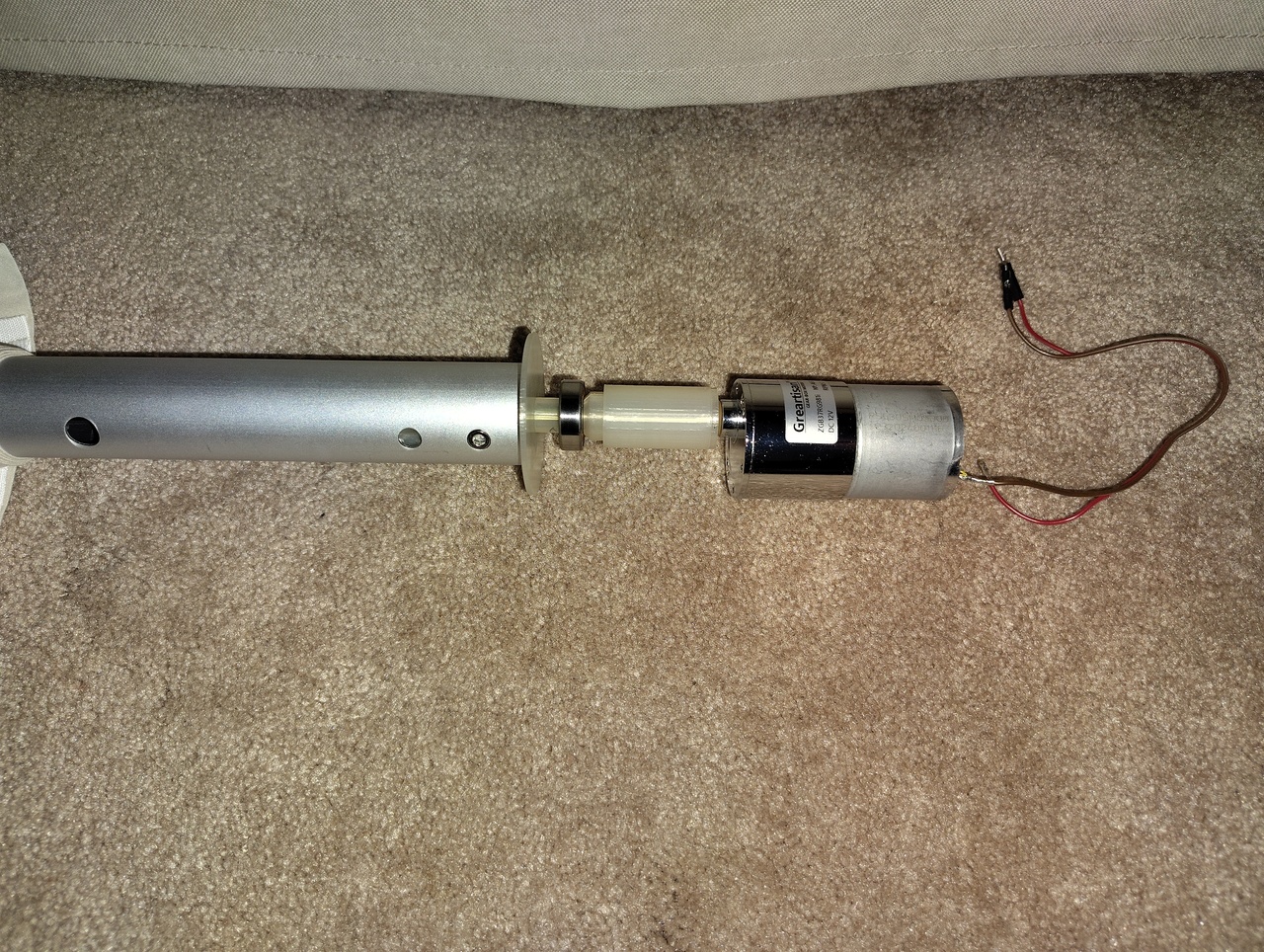 The coupling between the motor and the shaft is the same surgical tubing I used before, but with a printed compression cuff with slip-on cover that holds it snug and straight. There is no hard contact to the motor anywhere, which is vital as any time the motor touches anything hard you can hear a hum or buzz: